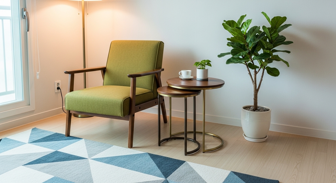 20평대 아파트 확장형 거실에 어울리는 미드센츄리 모던 스타일 가구 배치와 소품 활용법